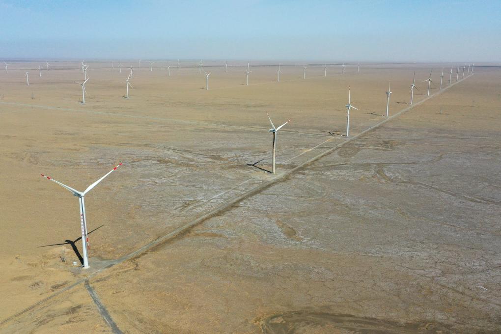 刘永青介绍,新疆天山北麓戈壁能源基地工程规模大,地质条件复杂,自然条件恶劣,综合技术难度高。中国华电、华润集团克服酷热、极寒、暴风、沙尘等恶劣天气影响,全力打造全国首个“沙戈荒”新能源外送基地大型构网型储能、全国最大100%国产化构网型风机等示范项目。