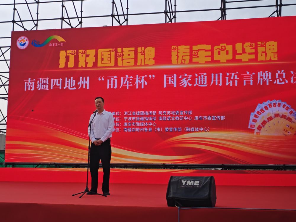 新华社乌鲁木齐9月16日电(记者初杭)16日上午,库车市南湖广场热闹非凡,南疆四地州“甬库杯”国家通用语言牌总决赛在此展开。这场备受瞩目的赛事,寄托着各族群众参与推广国家通用语言文字的热情。