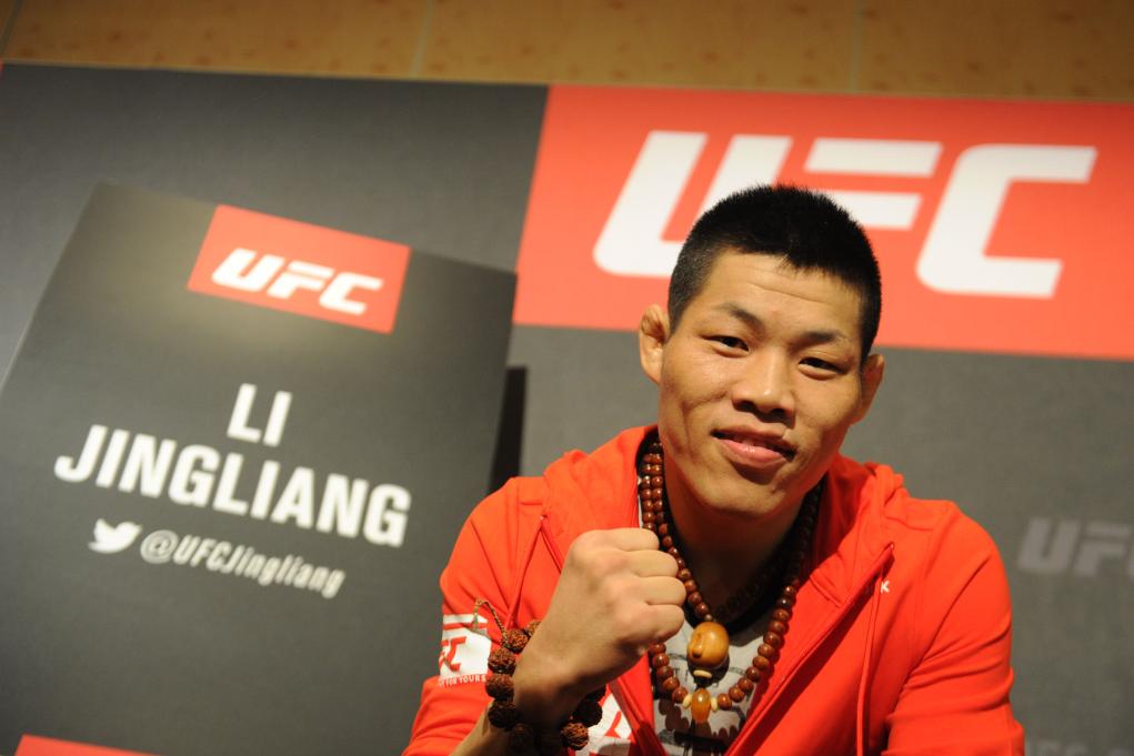2017年6月15日,中国选手李景亮出席在新加坡举行的UFC格斗之夜赛前发布会。新华社发(邓智炜摄)