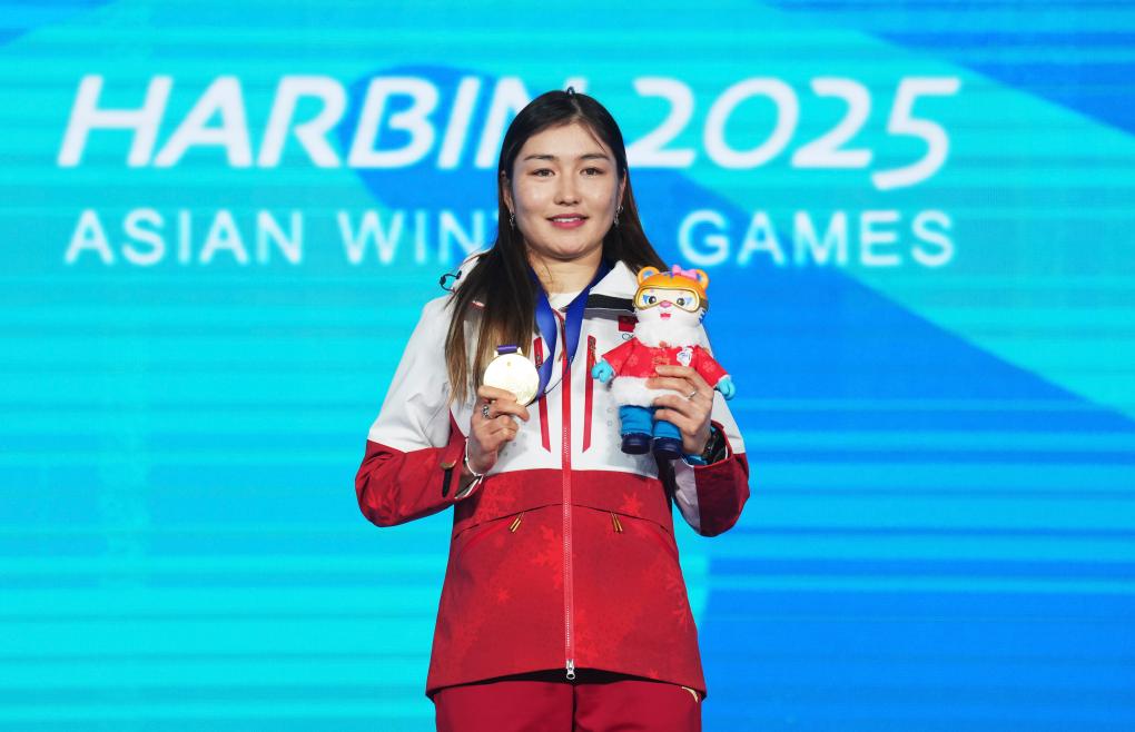 2月9日,巴亚尼·加林在第九届亚冬会颁奖仪式上。新华社记者 王松 摄