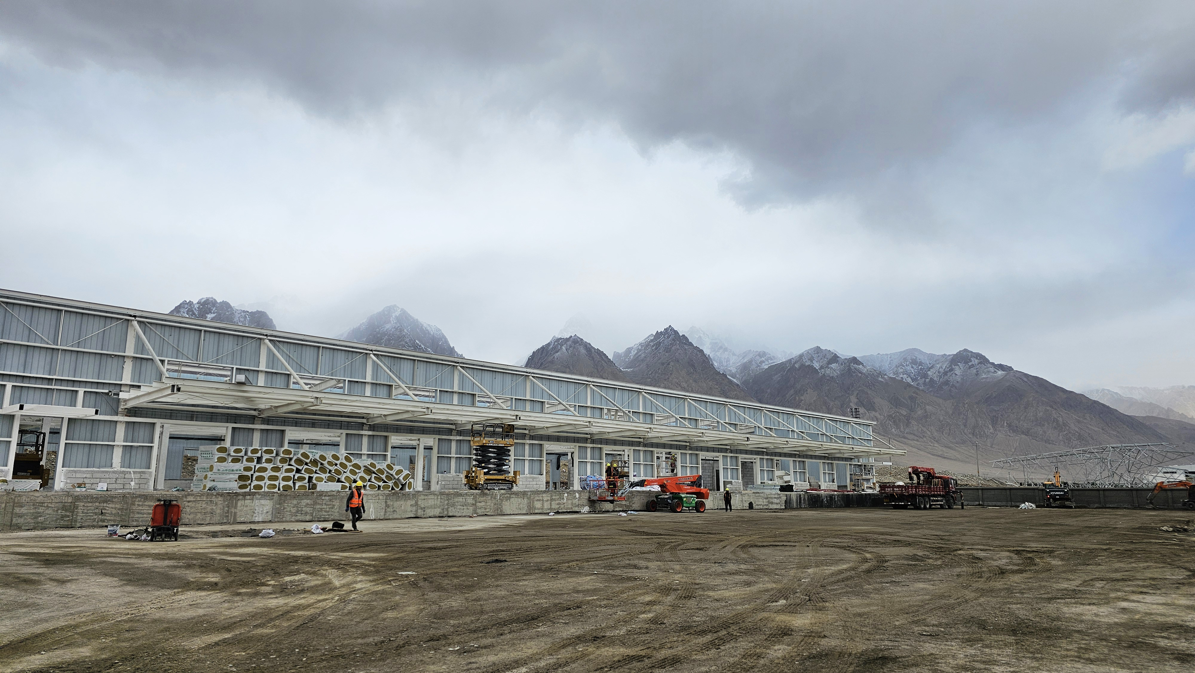 喀什地区2024年红其拉甫口岸查验基础设施建设项目位于塔什库尔干县,距离世界海拔最高的口岸100多公里。“塔什库尔干县平均海拔4000米,这里平均含氧量不足平原的一半。”耿金睿的话,道出了施工的首要挑战。