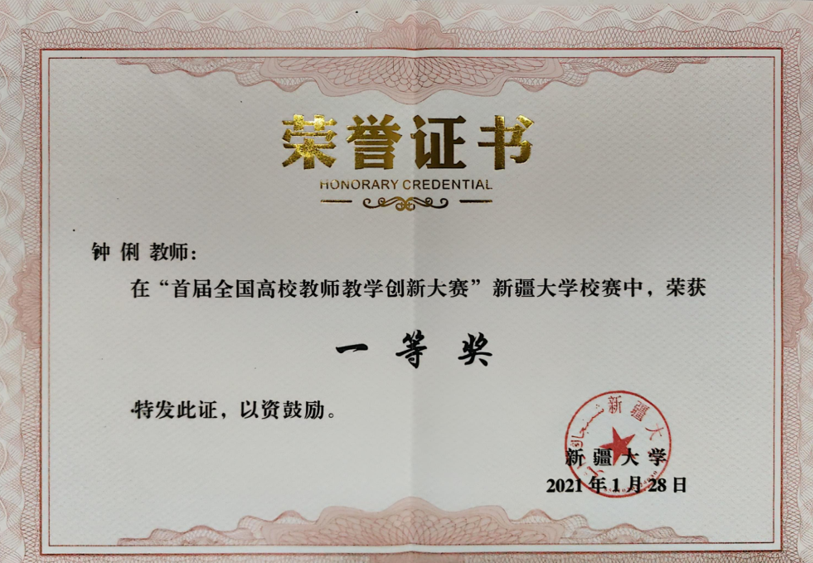 钟俐老师的创新实践获得了业界的广泛认可。她荣获了2021年新疆大学教师教学创新大赛一等奖,2025年作为主要完成人获得校级教学成果特等奖,2023年作为第一完成人获得校级教学成果三等奖,2019年获得校级教学成果二等奖。这些成果肯定了她和团队在人才培养模式、课程体系建设等方面的突出贡献。这一系列沉甸甸的奖项,是她教育创新之路的最佳注脚。