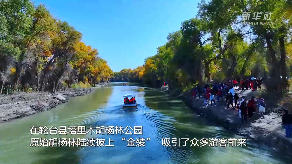 金秋时节,新疆巴音郭楞蒙古自治州轮台县约100平方公里原始胡杨林迎来最佳观赏季。