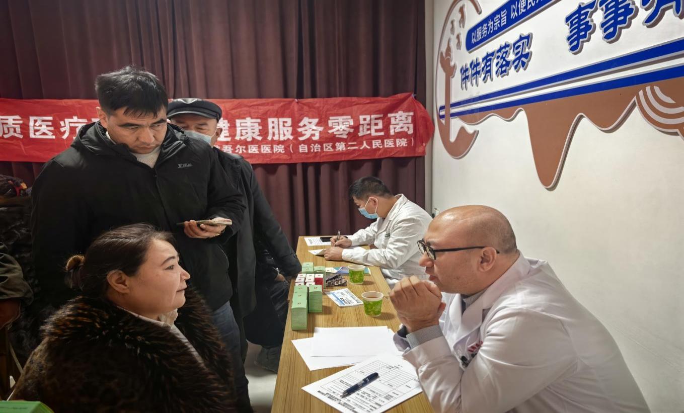 同步开展的义诊活动成为此次活动的又一亮点。自治区维吾尔医医院的4名专家医生组成的医疗团队,携带相关医疗设备与常用药品,为闻讯前来的村民提供了面对面的专业诊疗和健康咨询服务。专家们耐心细致地问诊、检查,针对常见病、多发病及部分疑难杂症进行初步诊断,现场发放对症药品,并根据个体情况开具后续治疗与康复指导药方。此举极大地方便了当地群众,尤其是为那些因路途遥远、行动不便而难以赴乌鲁木齐就医的村民解决了“看病难”的实际问题,将党和政府的温暖与关怀直接送到了村民的心坎上。