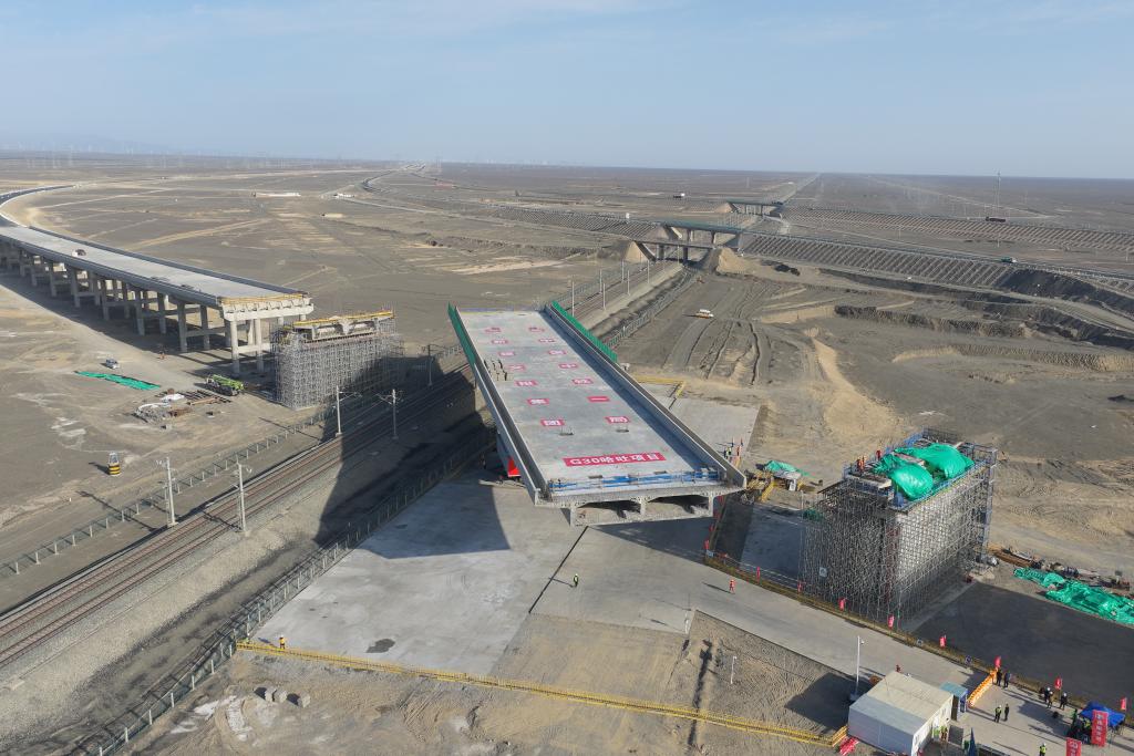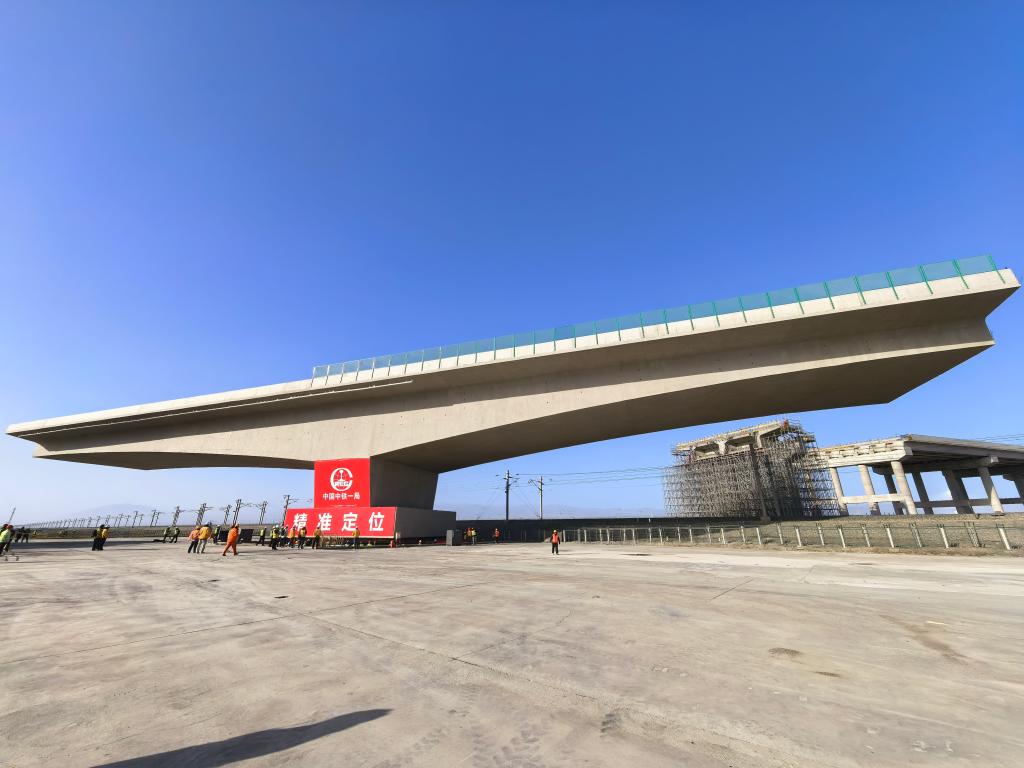 新华社乌鲁木齐11月18日电(记者关俏俏 阿曼)11月18日,新疆吐鲁番盆地天朗气清,微风轻拂略带冬寒。距离鄯善县城70公里的戈壁滩上,两跨65米、重达2万吨的T形刚构连续梁正在等待作业。