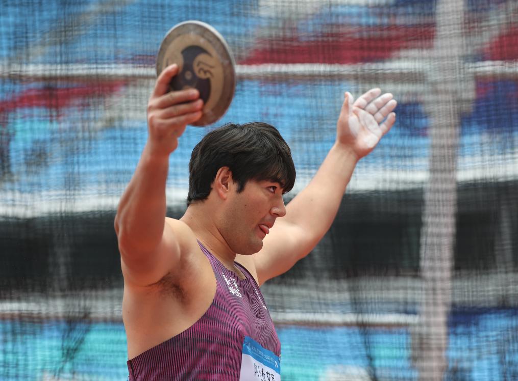 11月20日,新疆队选手阿卜杜艾尼·图尔贡在试投前。他以64米40的成绩夺得冠军。新华社记者 江汉 摄