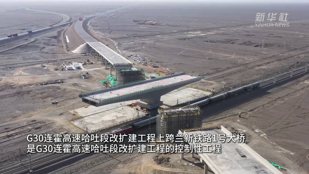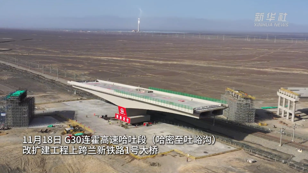 11月18日,G30连霍高速哈吐段(哈密至吐峪沟)改扩建工程上跨兰新铁路1号大桥历时70分钟逆时针旋转61度,以毫米级精度精准落位,成功转体。