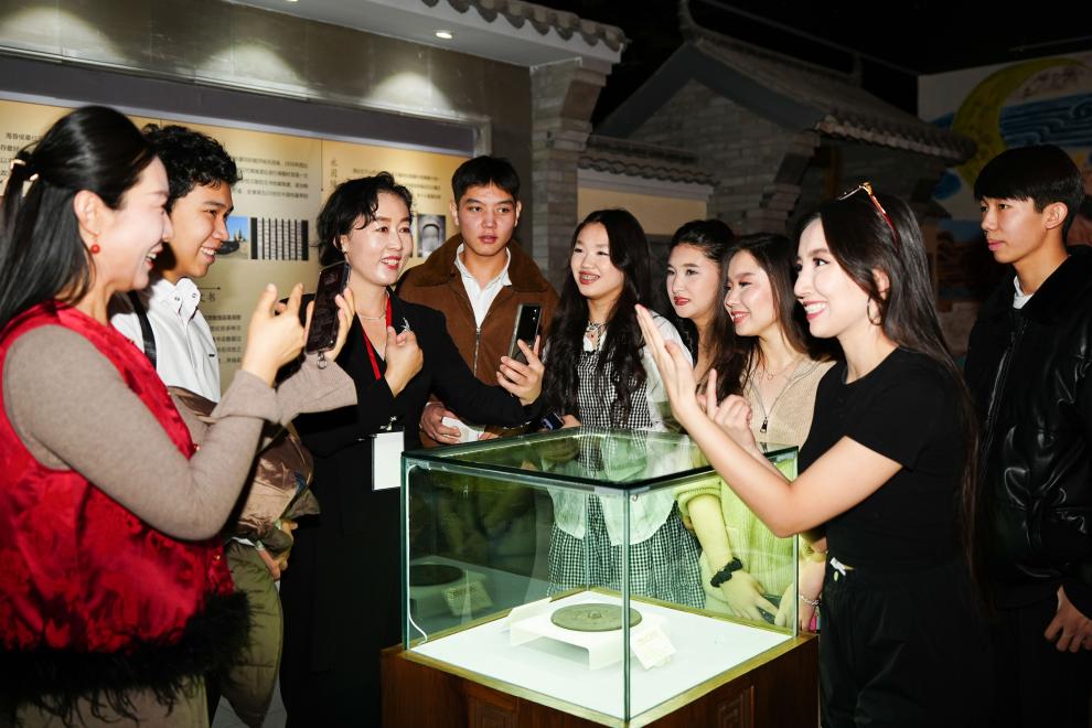 11月28日,在新疆中哈霍尔果斯国际边境合作中心中国文化馆,来自哈萨克斯坦的青年参观中国历史文化展。新华社记者 徐宏岩 摄