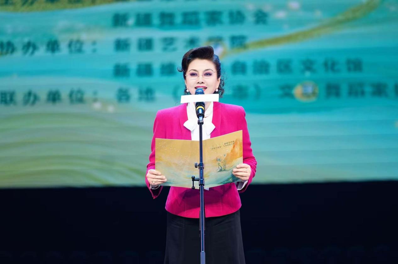 中国文联副主席、中国舞蹈家协会副主席、新疆文联副主席、新疆舞蹈家协会主席迪丽娜尔•阿布拉在致辞中指出,文艺事业是党和人民的重要事业,广大文艺工作者肩负着展现时代风貌、引领时代风气的使命,我们要引领舞蹈创作者从中华优秀传统文化和各民族璀璨文化中汲取养分,创作生产更多传播当代中国价值观念、体现中华文化精神、反映中国人审美追求的优秀作品,以舞蹈艺术为载体,为构筑中华民族共有的精神家园贡献力量。