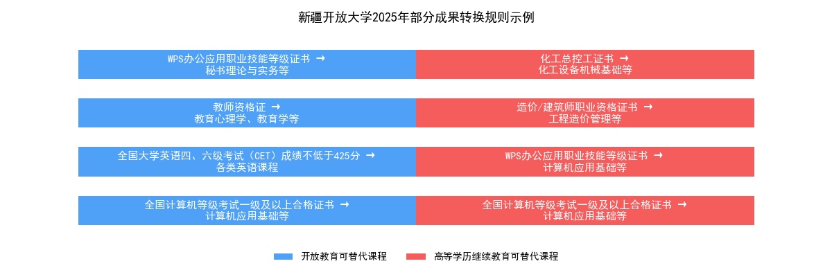 近日,新疆开放大学正式发布2025年学习成果转换规则(以下简称“规则”)。该规则主要面向全疆开放教育和高等学历继续教育学习者,围绕学习成果的积累、认定与转换,通过建立学习成果转换制度,使学习成果认定与转换有章可循、有据可依,从而有效打破学历教育与非学历教育间的壁垒,实现各级各类学习成果的融通与衔接。