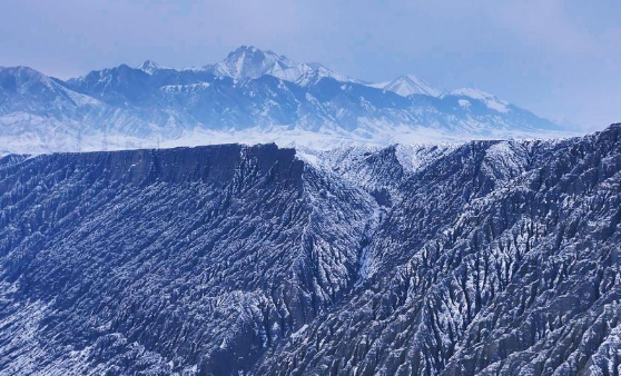 近日,位于新疆乌苏市与奎屯市交界处的奎屯河大峡谷,褪去了往日的喧嚣,呈现出雄奇静谧的冬日画面。峡谷呈南北走向,全长约30公里,谷壁陡峭如削,沿谷遍布断崖,最深处逾300米。流水经年冲刷,形成险峻地貌,展现着大自然的鬼斧神工。