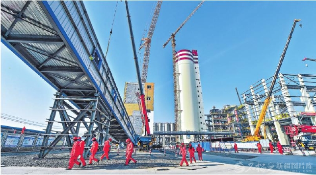 2月19日,位于库尔勒上库高新技术产业开发区的独山子石化塔里木大化肥装置搬迁改造项目施工现场一派繁忙,工人们正加班加点,力争项目早日投产。□石榴云/新疆日报记者王立华摄