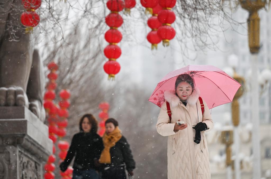 3月11日,市民冒雪走在新疆乌鲁木齐市西大桥上。新华社记者 王菲 摄